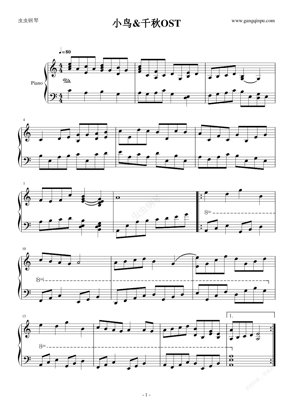 钢琴谱:世界第一初恋-小鸟&千秋OST