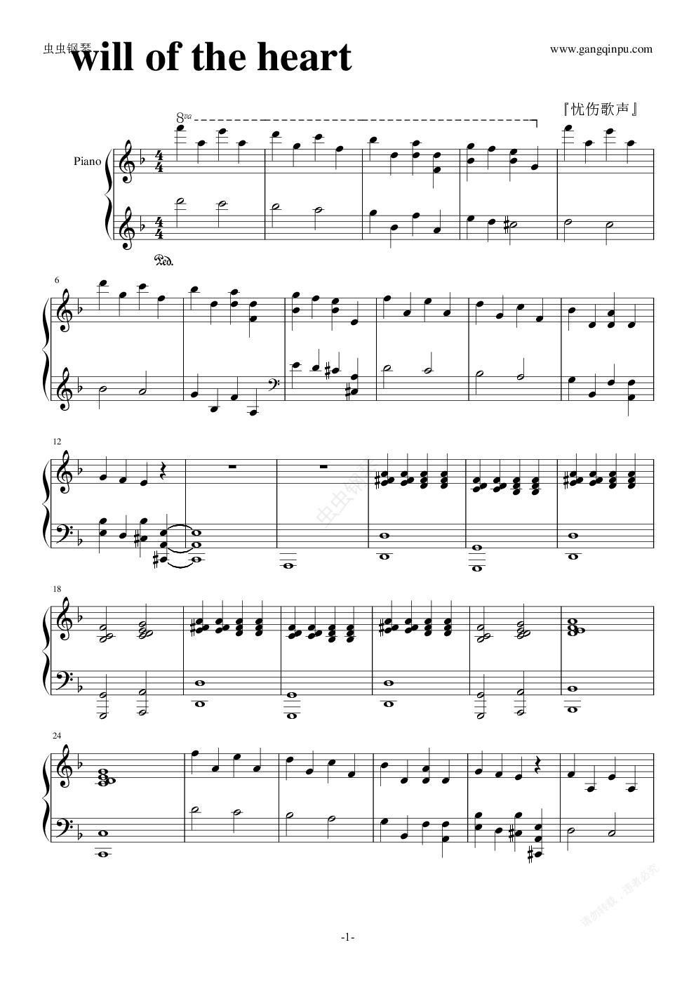 钢琴谱:will of the heart