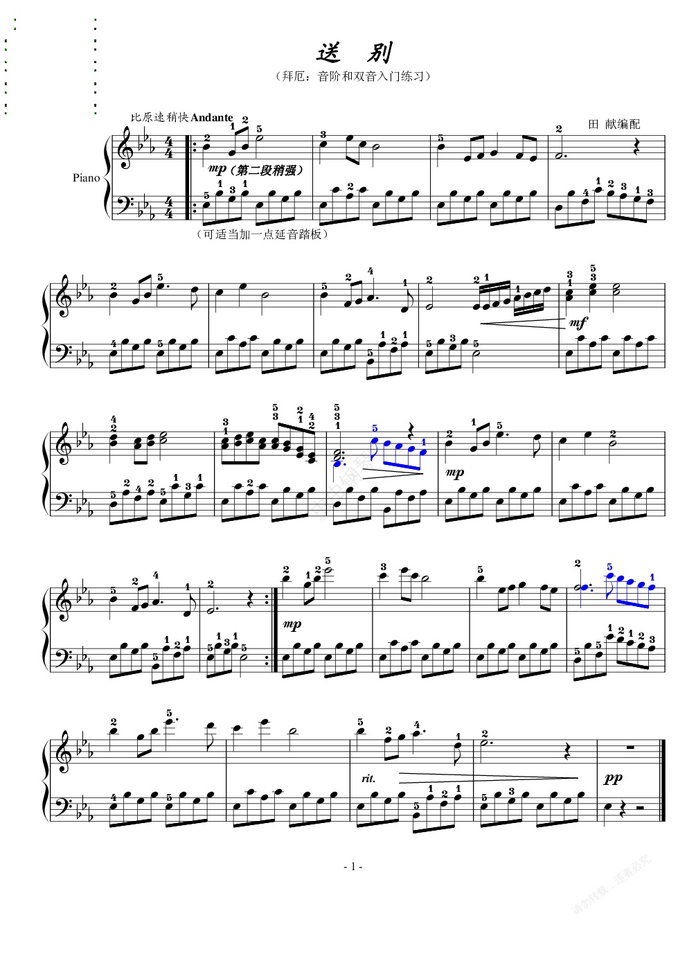 钢琴谱:送别
