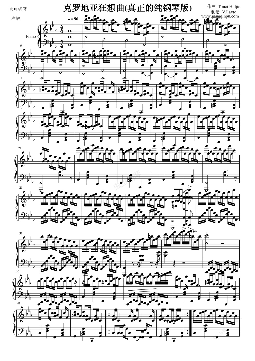 钢琴谱:克罗地亚狂想曲(真正的纯钢琴版)