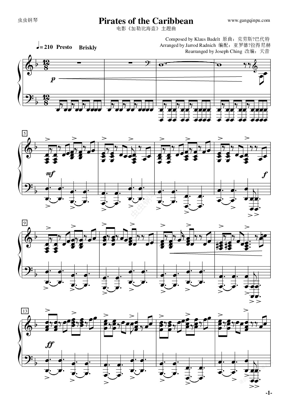 钢琴谱:加勒比海盗主题曲演奏改编版