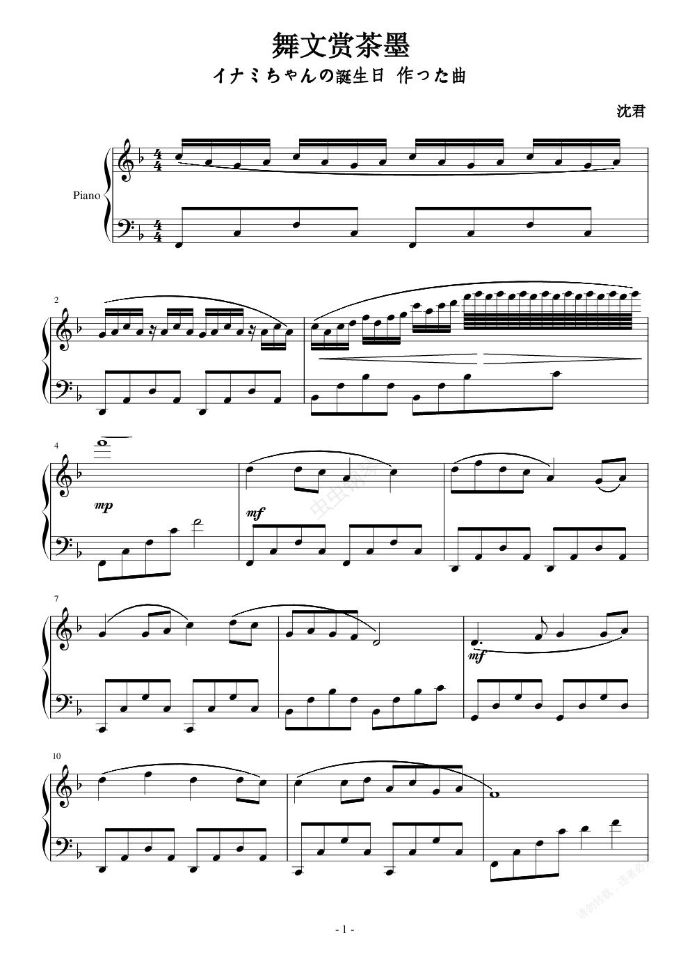 钢琴谱:舞文赏茶墨