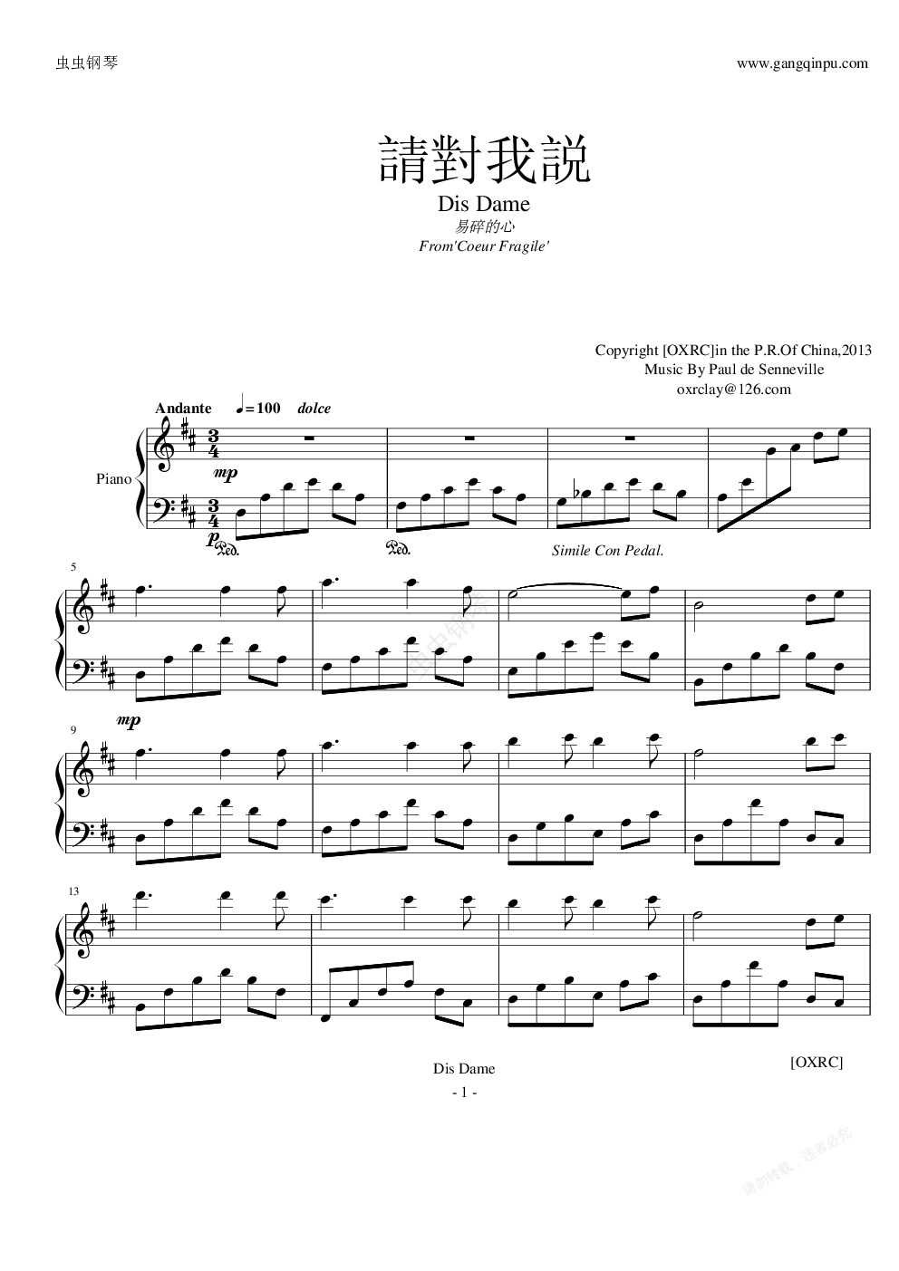 钢琴谱:[OXRC] Dis Dame 請對我説