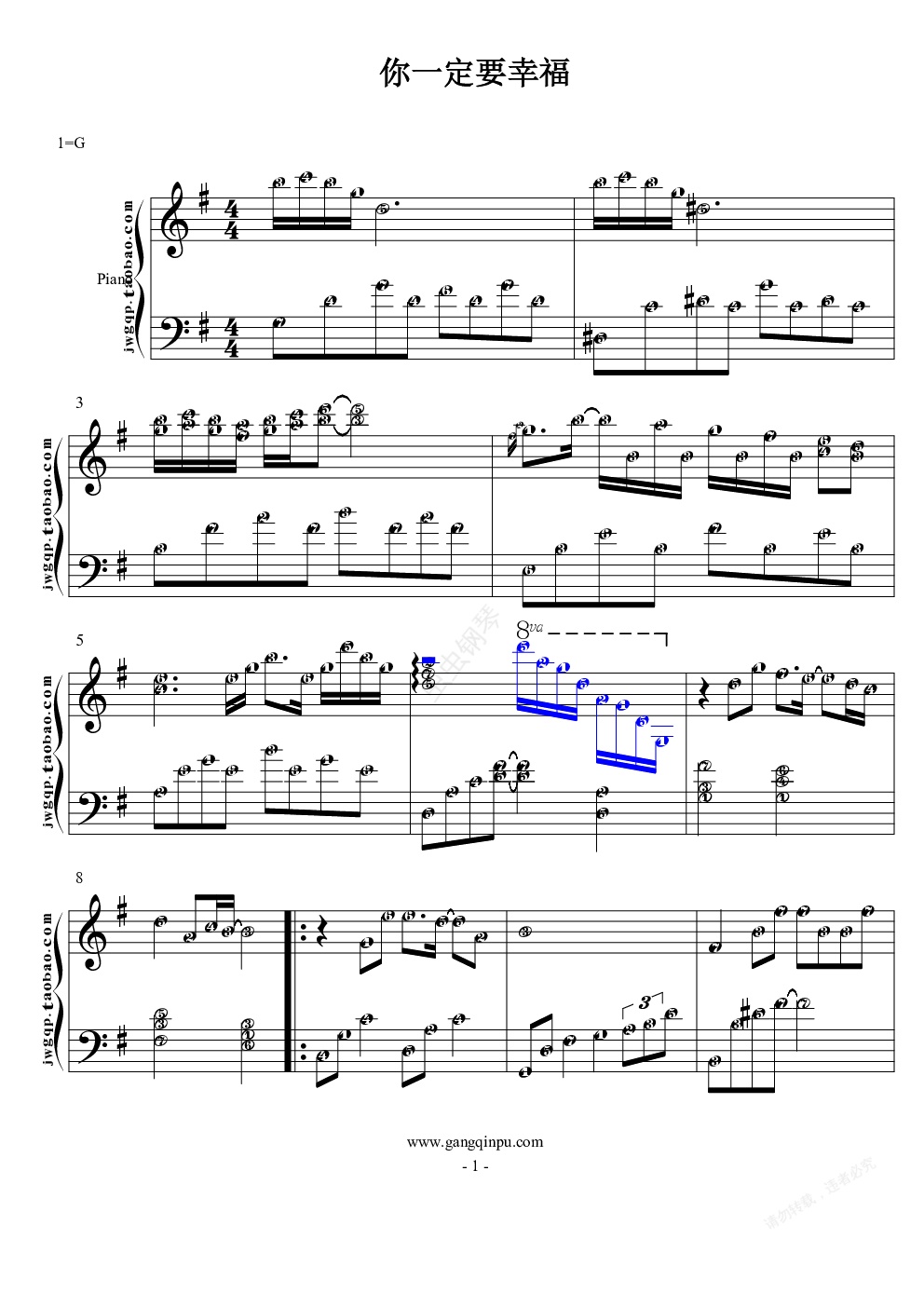钢琴谱:一定要幸福 首调 固定调 简五谱