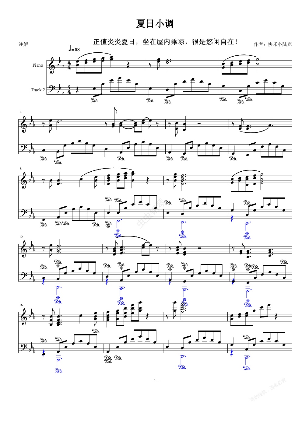 钢琴谱:夏日小调