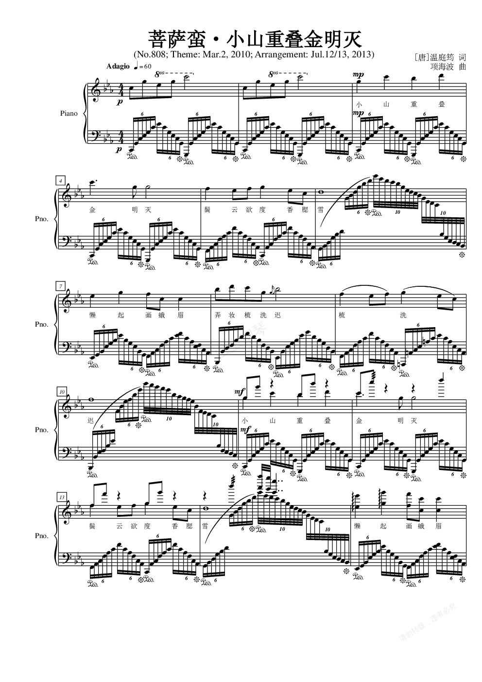 钢琴谱:《小山重叠金明灭》