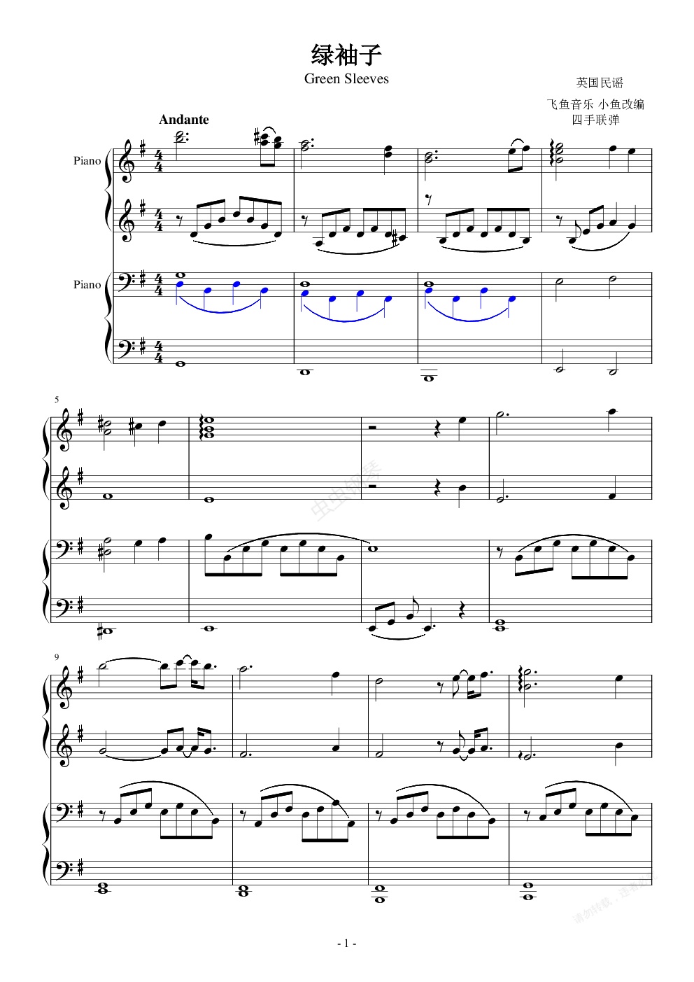 钢琴谱:绿袖子 (green sleeves)