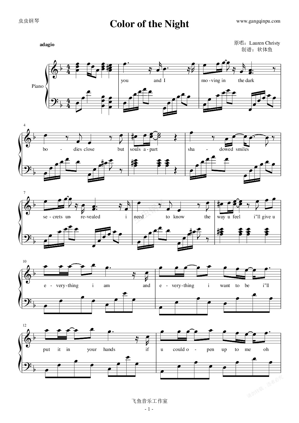给他了xps格式的谱子(之前说好的),交易完成后,买家先是要ove和pdf,给他了;然后说他对歌不熟,要我给谱子加歌词,我免费给他弄好了,这是英文歌词,单词拆开要加很多小破折号,还有些地方一个音对两个英文音节,需要重新加音符,工作量不少;之后他又问我很多关于和弦和伴奏的知识,都是很基本的知识,我秉着音乐爱好者互帮互助的精神都耐心给他解答了,虽然我很不解一个什么都不懂的人,要这个谱子能弹吗;最后一件事,触到我底线了,他说他要把这个谱子传到某个繁体钢琴网站上,能有酬劳,但是这个谱面不符合网站的要求,叫我给他修改底部版权信息和右上角制谱人信息,我婉拒了,敢情我卖了谱子送了各种服务之后还要出卖自己的劳动成果吗?之后他自己用ove去改了。如果大家以后在别处见到这个谱子,或者是微调了之后加上歌词的版本,都是出自我小鱼。
