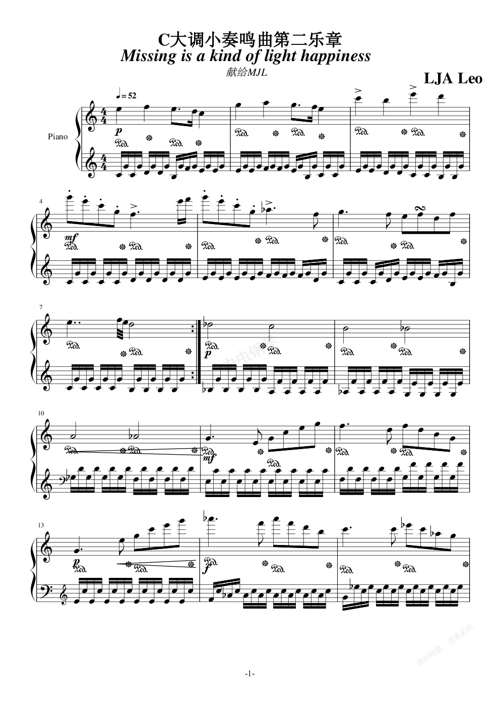 钢琴谱:C大调小奏鸣曲第二乐章(NO.1)