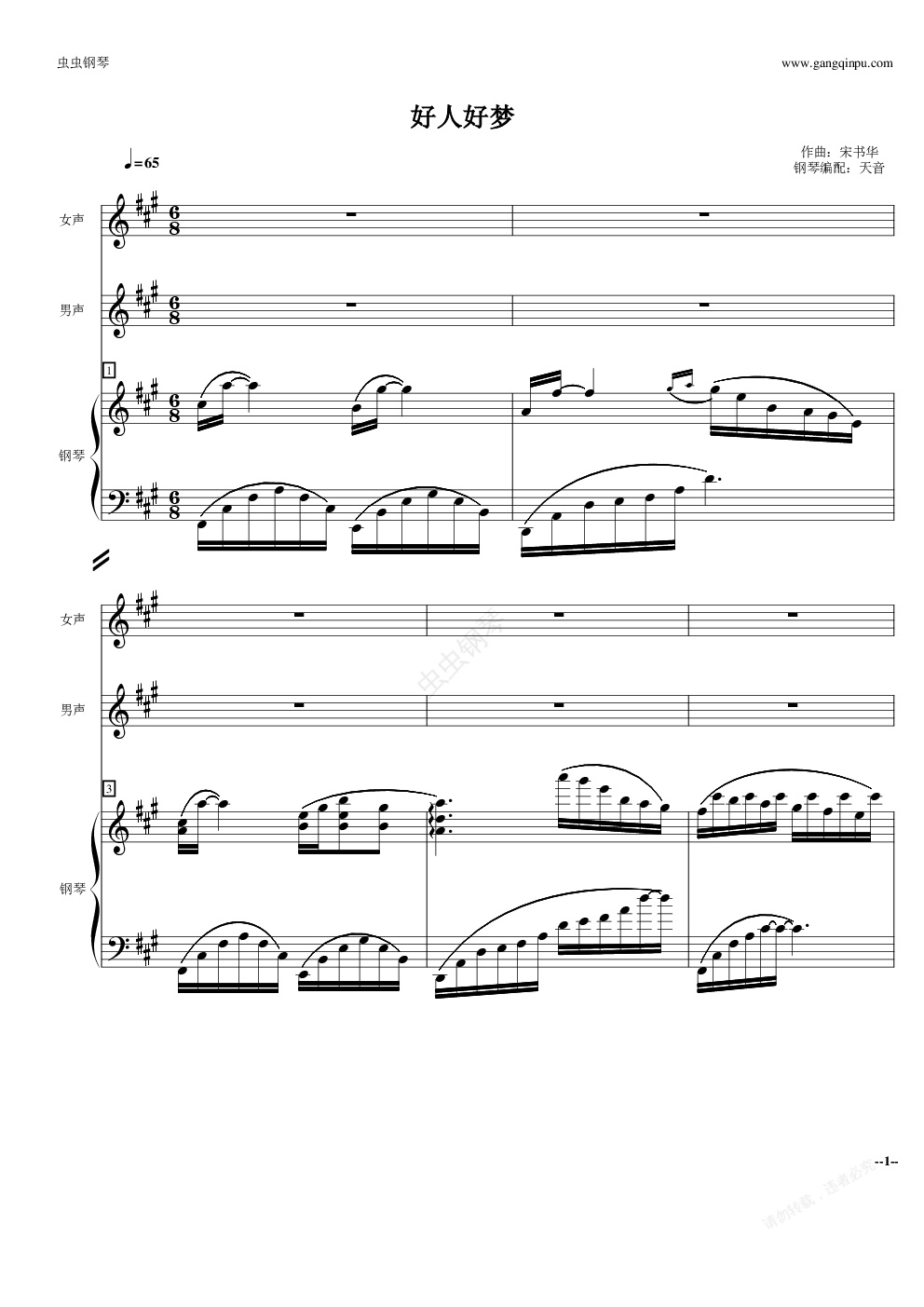 钢琴谱:好人好梦-原调钢琴伴奏版