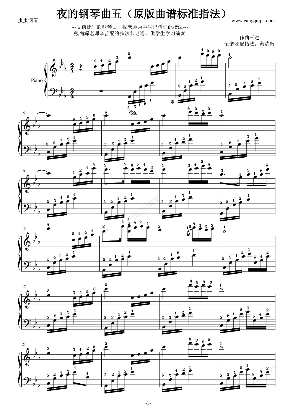 钢琴谱:夜的钢琴曲五配指法版