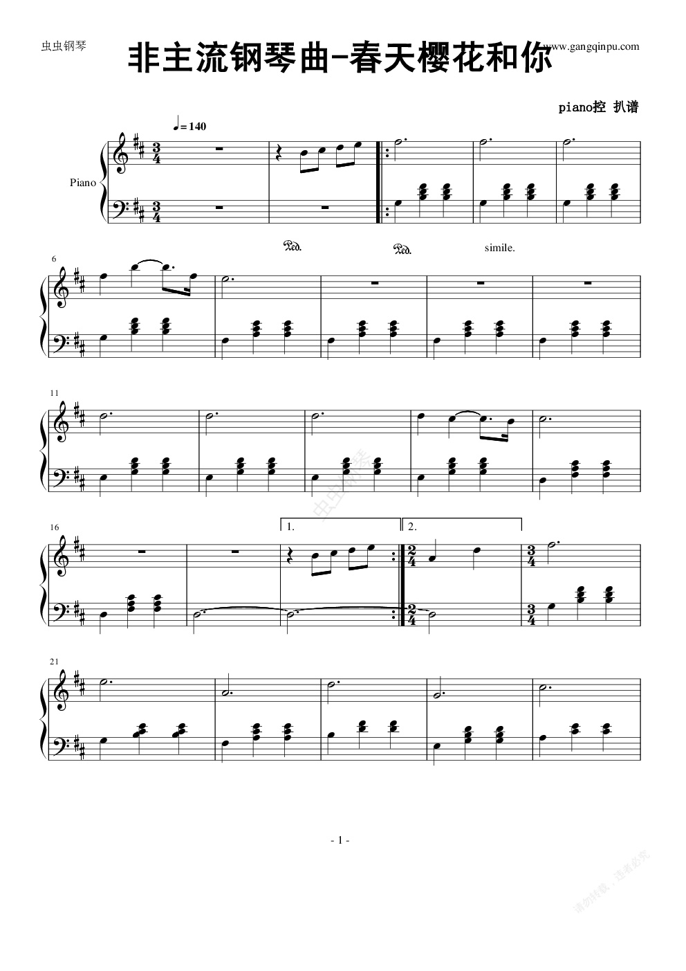 钢琴谱:非主流钢琴曲-春天樱花和你