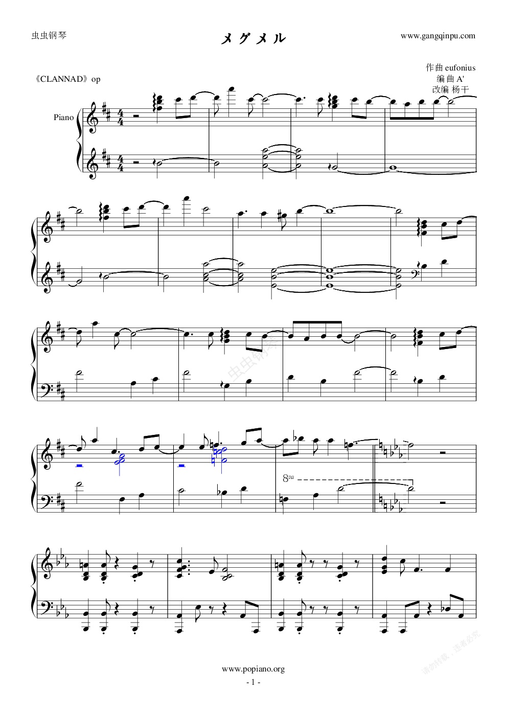 钢琴谱:《CLANNAD》op《メグメル(欢乐岛)》
