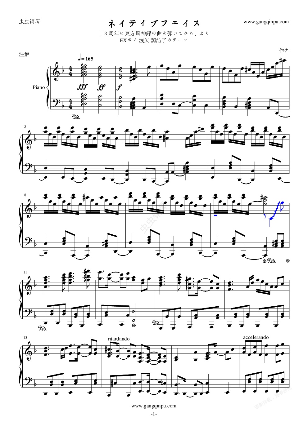 钢琴谱:ネイティブフェイス(信仰风化曲)