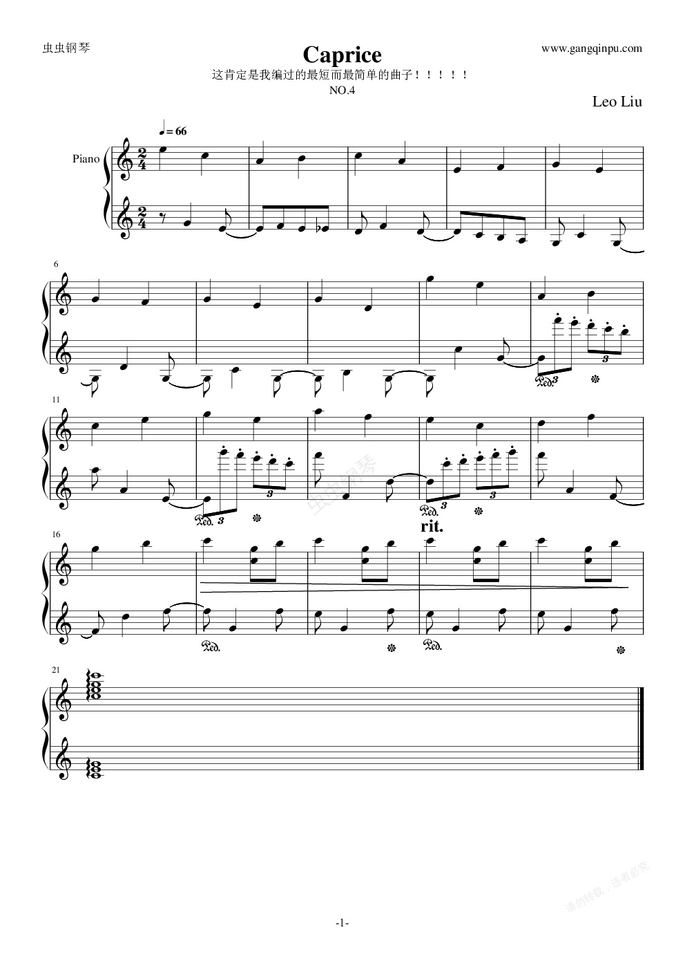 钢琴谱:随想曲4(星星)