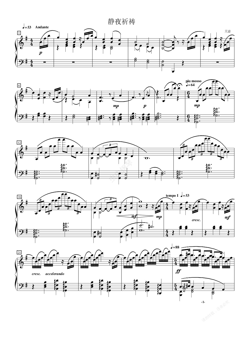 钢琴谱:静夜祈祷