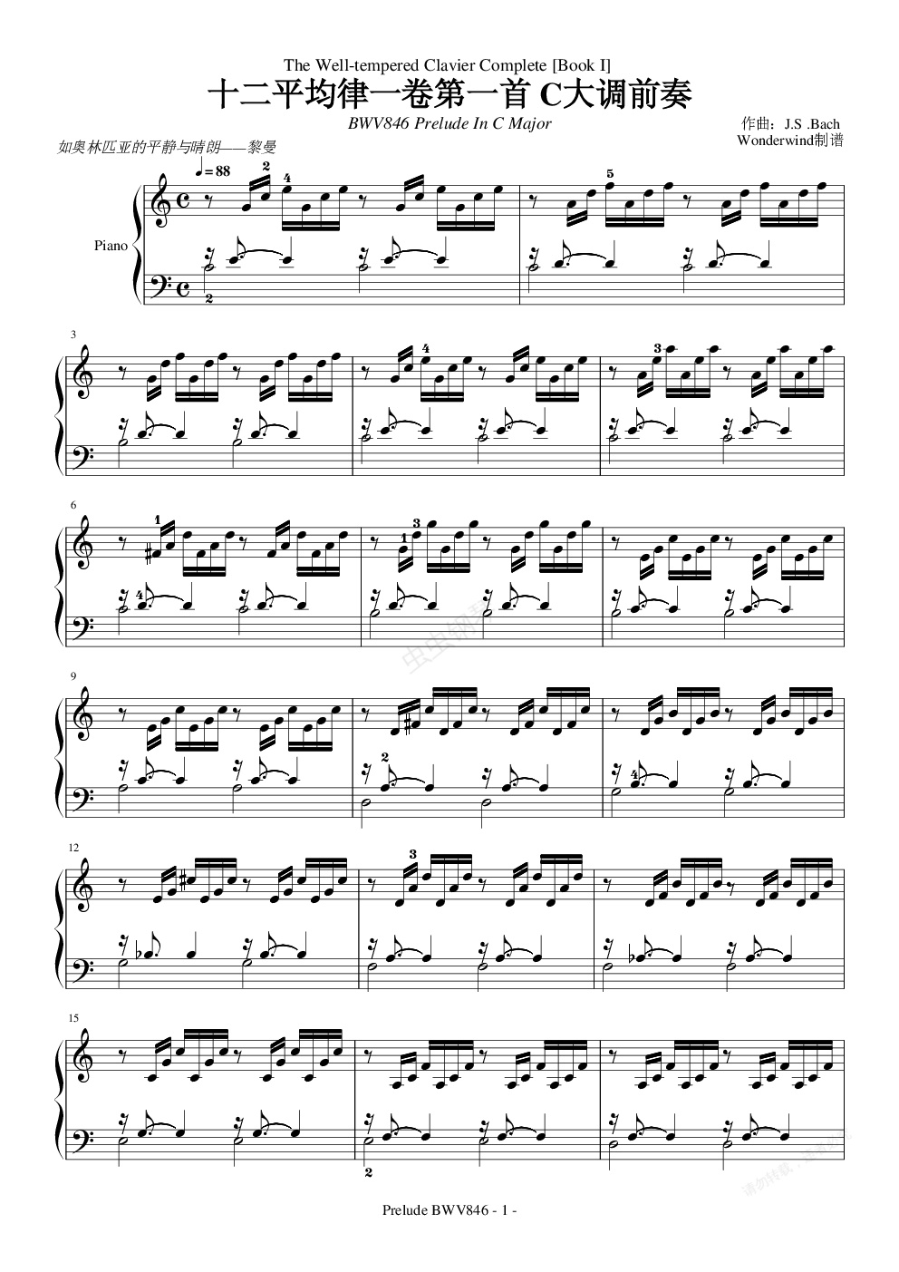 钢琴谱:十二平均律一卷第一首 C大调前奏