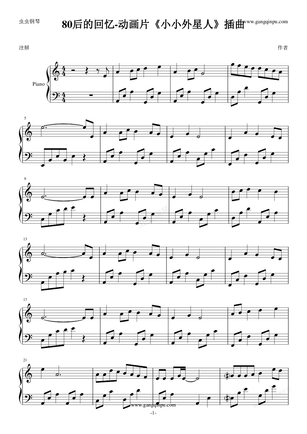 钢琴谱:80后的回忆-动画片《小小外星人》插曲