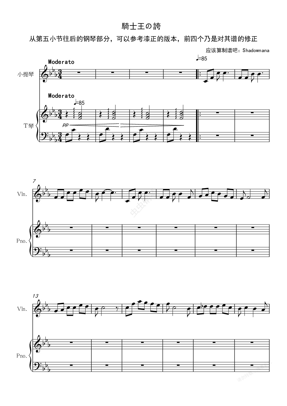 五小节后可以参考7政版本链接/html/ 我这个版本算是融合了,目前几种版本,修改后的一种吧。另外我不推荐7政那种和声与我这个曲子这样配- -。。。7政编得感觉太柔了。 演奏者可以自己斟酌。