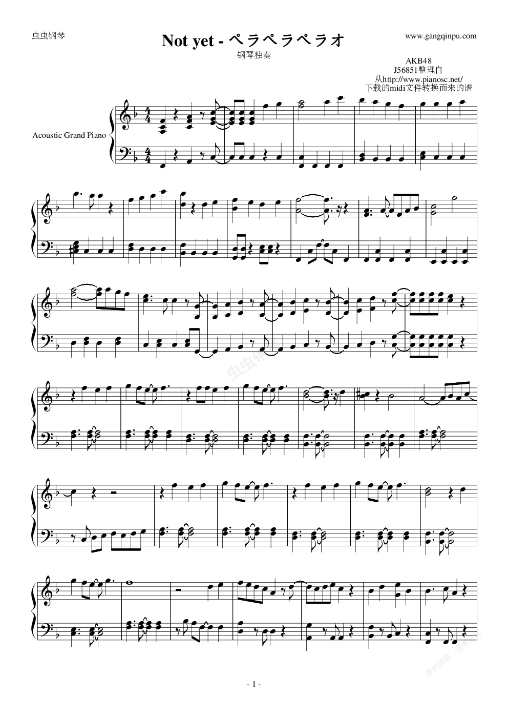钢琴谱:Not yet - 《ペラペラペラオ》 钢琴独奏