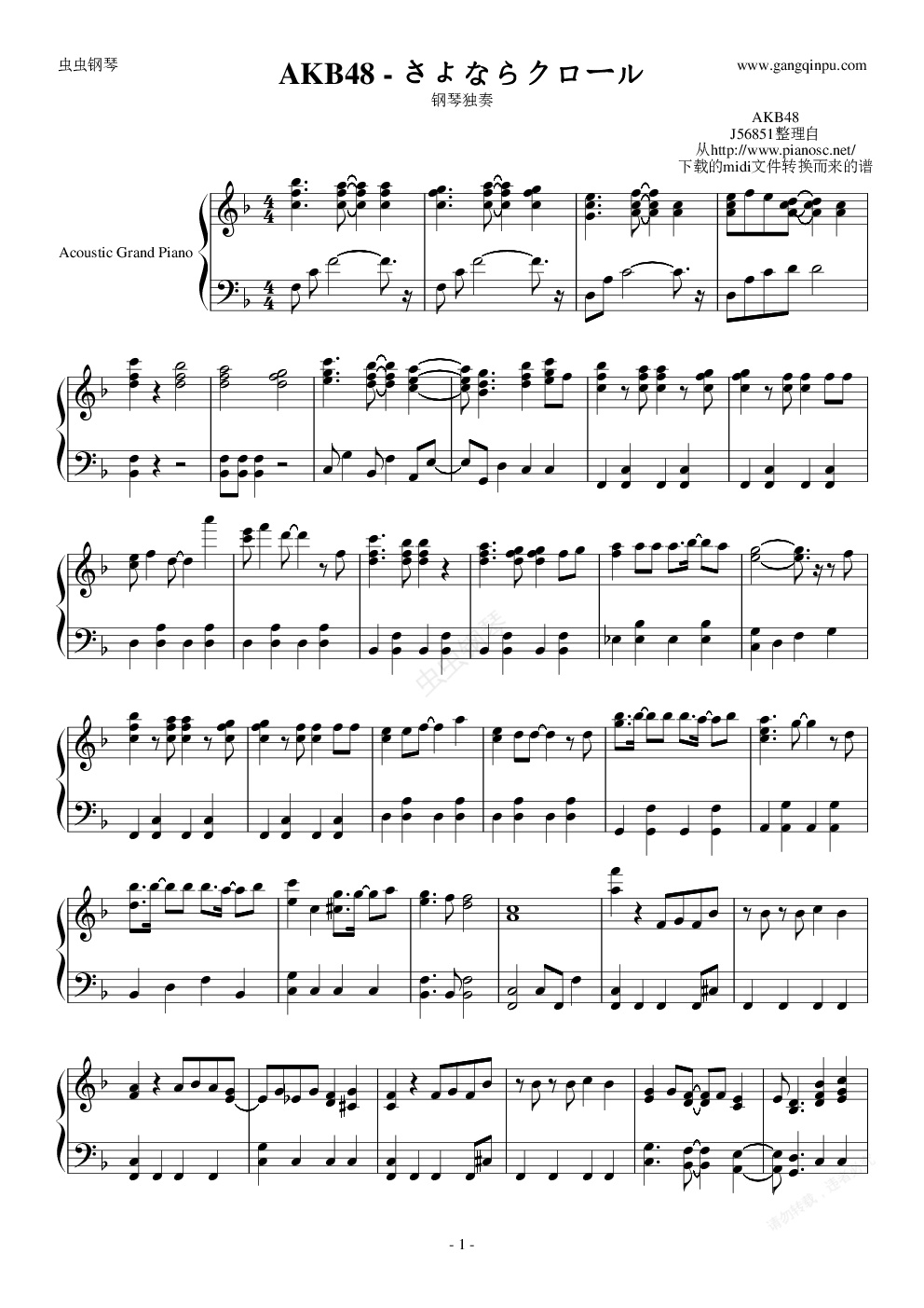 钢琴谱:AKB48 - さよならクロール 钢琴独奏