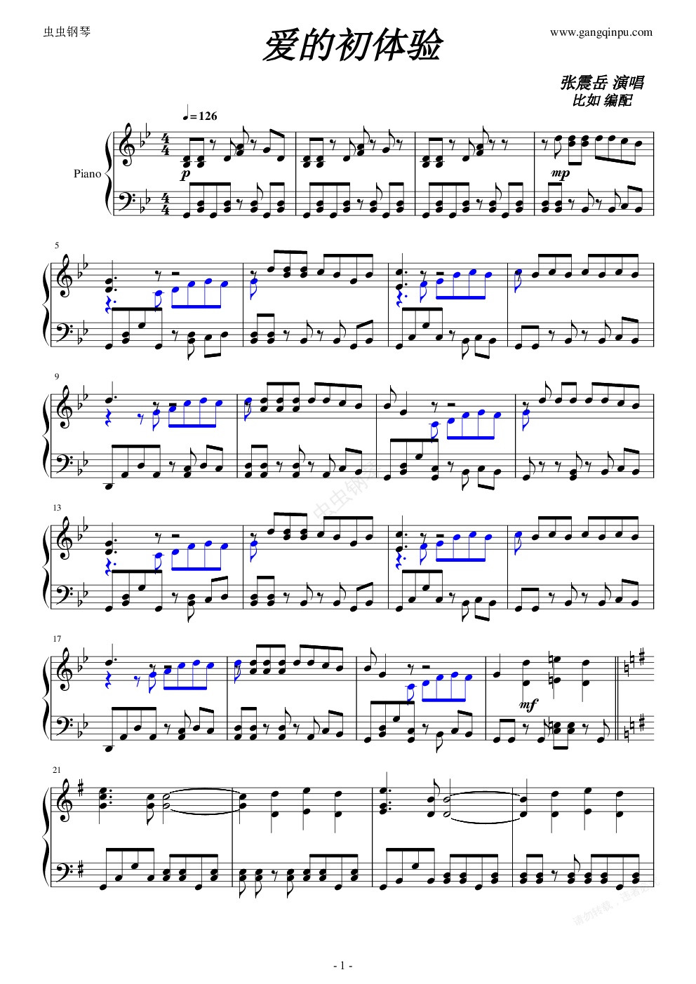 钢琴谱:爱之初体验