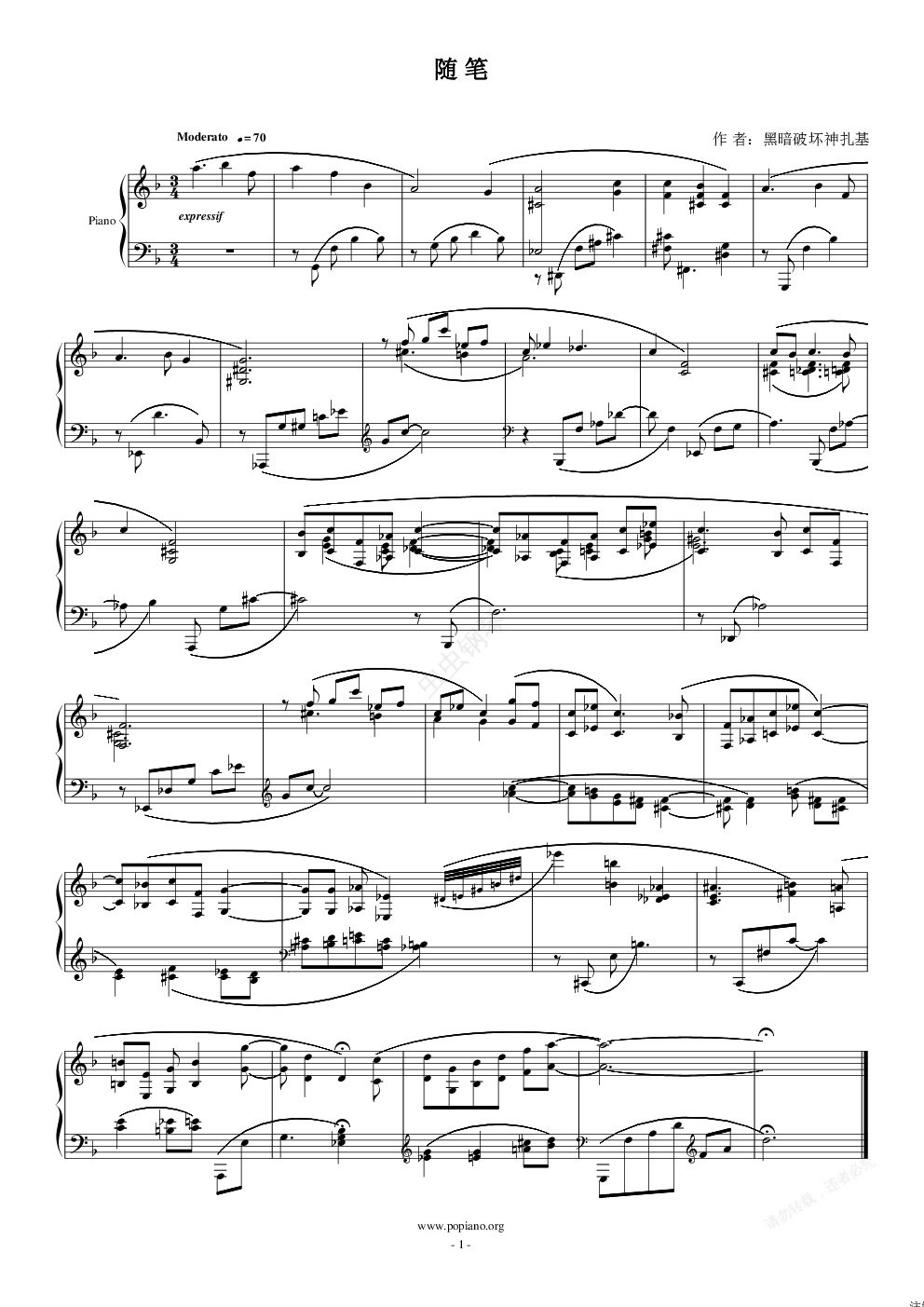 钢琴谱:此曲没了