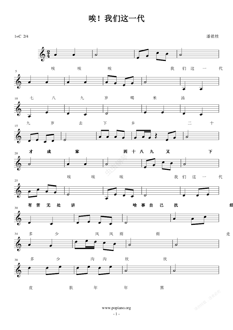 钢琴谱:哎!我们这一代