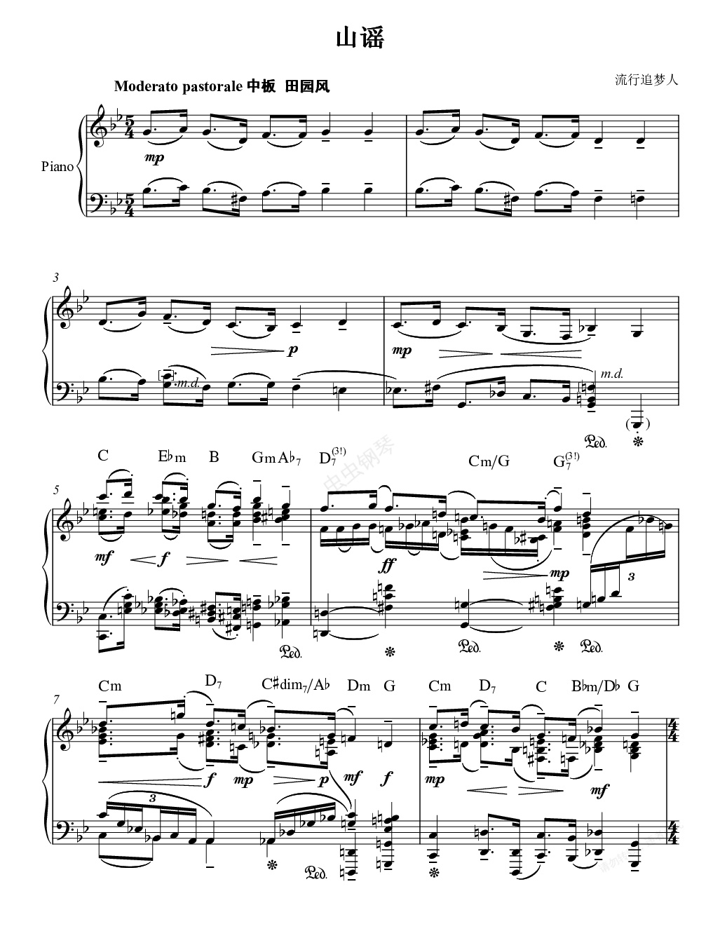 钢琴谱:山谣-蓝调中国山歌