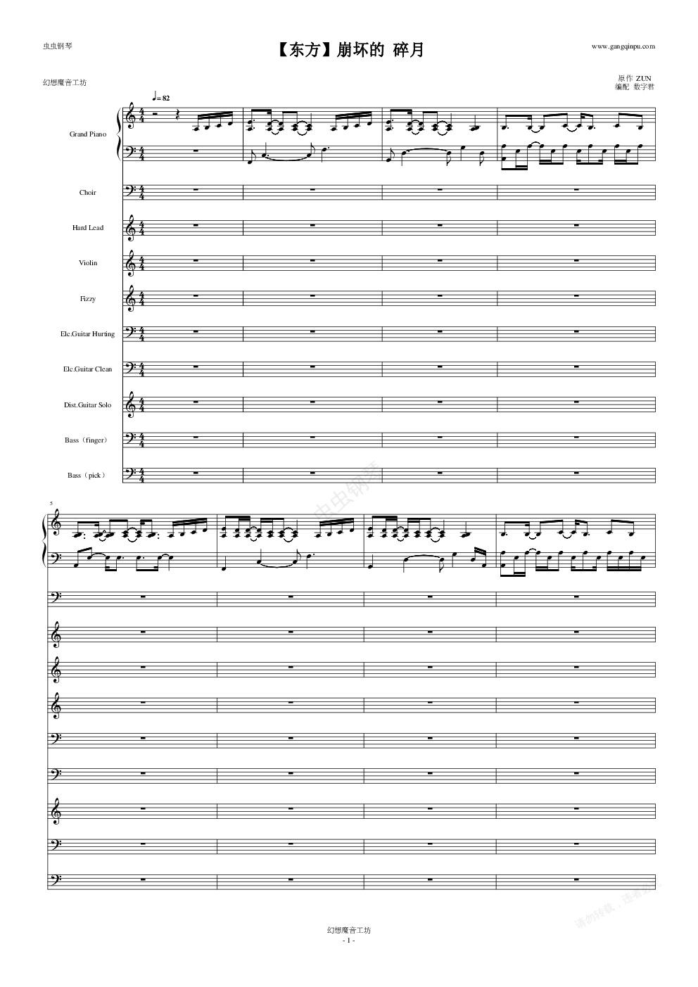 (/ ̄(エ) ̄)/ 注: 收录于魔音工坊旗下第一张同人CD《幻想月》 Track 07 《百萬鬼月行》 首发于2014.1.1广州ADSL 前几天脑子抽了就做了个这个 1分39秒后有高能。。 没有把蛋疼的鼓写到谱子里。。 欢迎吐槽。。。
