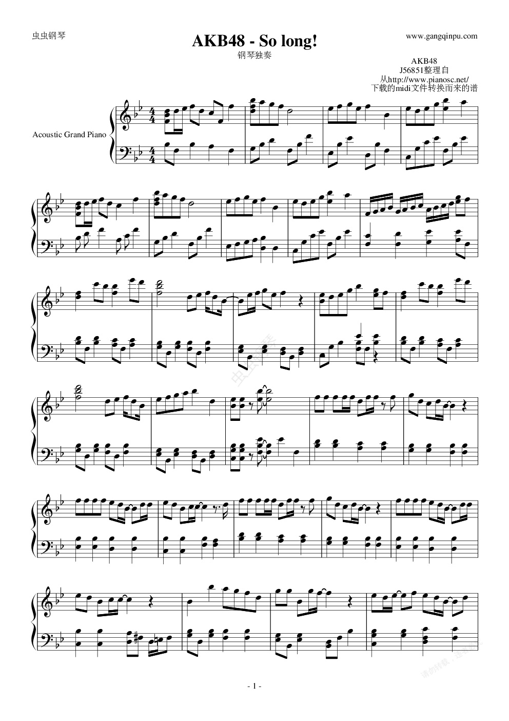 钢琴谱:So long! 简易版(建议下载另一版本)