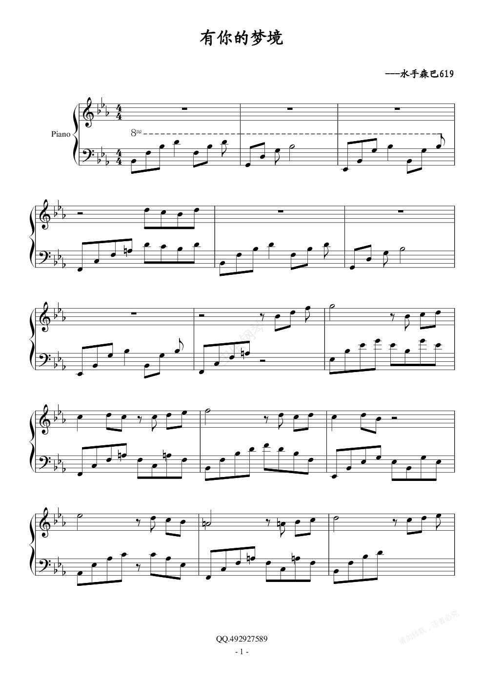 钢琴谱:有你的梦境