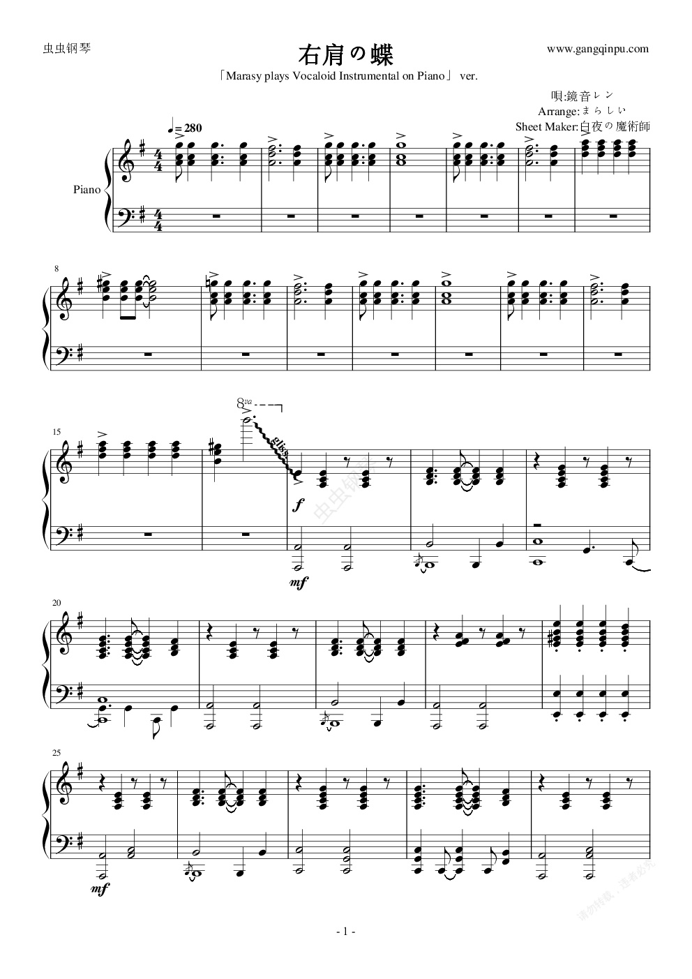 钢琴谱:【触手猴】右肩の蝶-V.I.P ver.