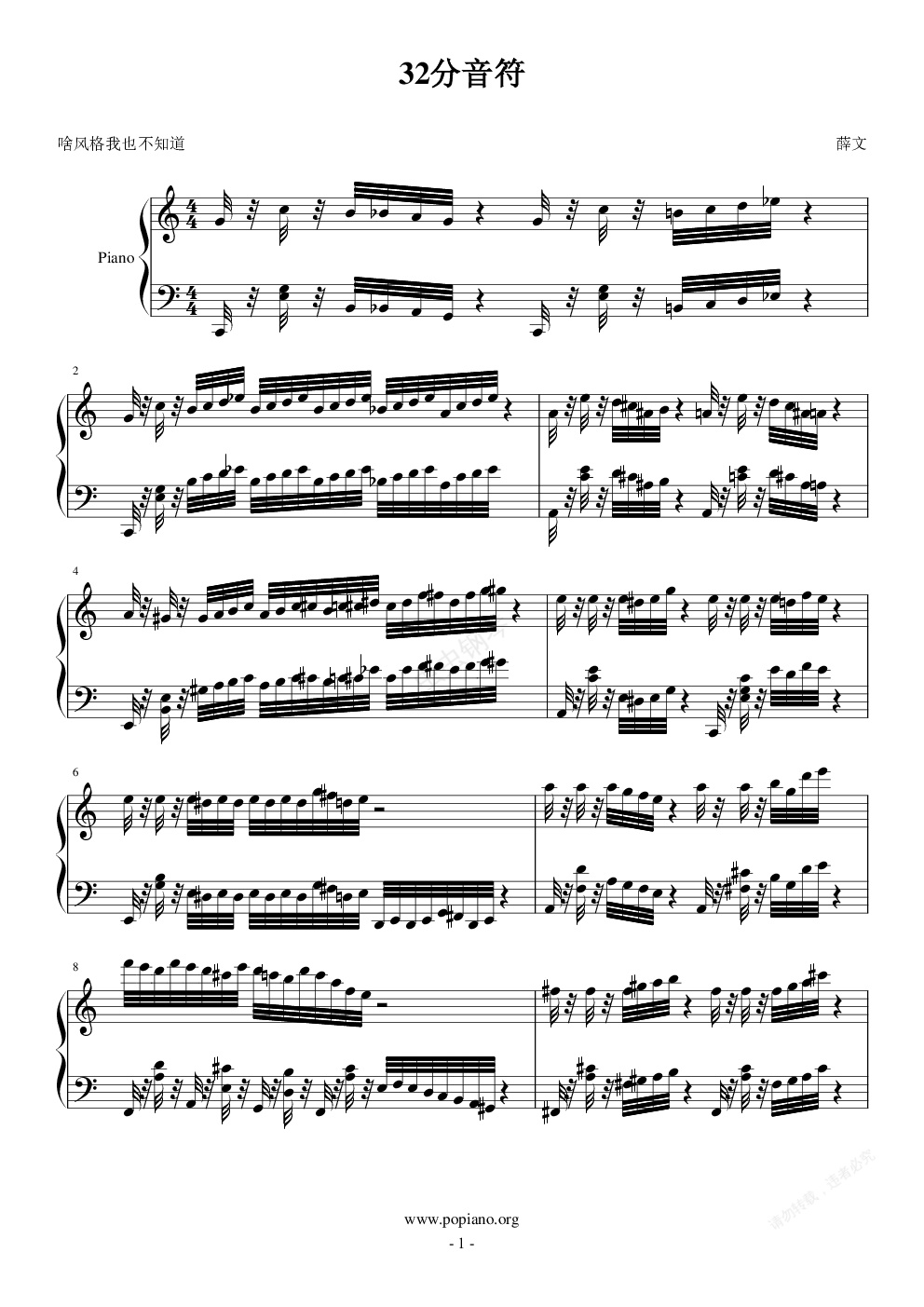 钢琴谱:32分音符