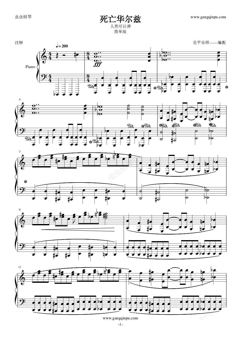 钢琴谱:死亡华尔兹简单版(人类可以弹)