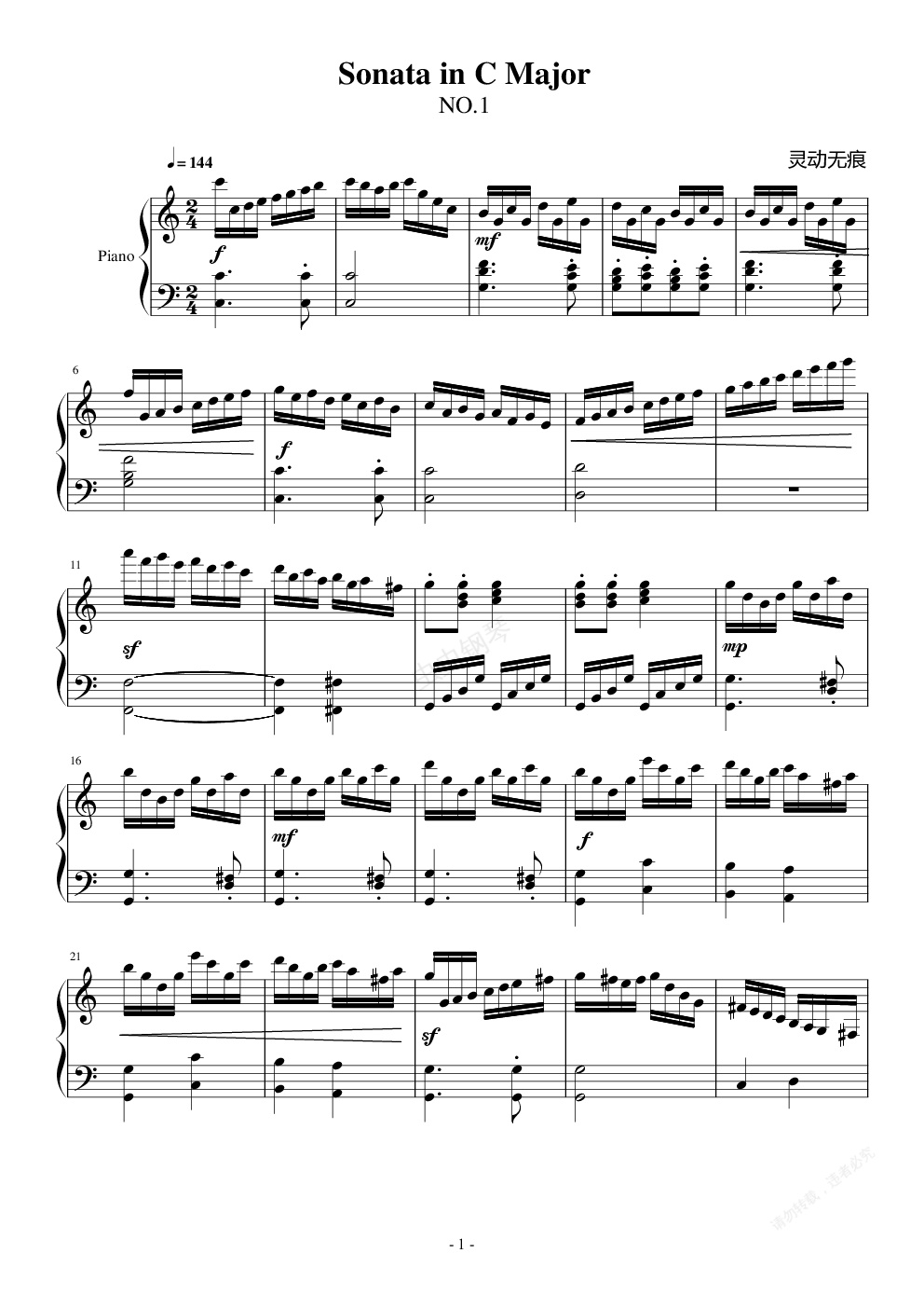 钢琴谱:C大调小奏鸣曲第三乐章(NO.1)