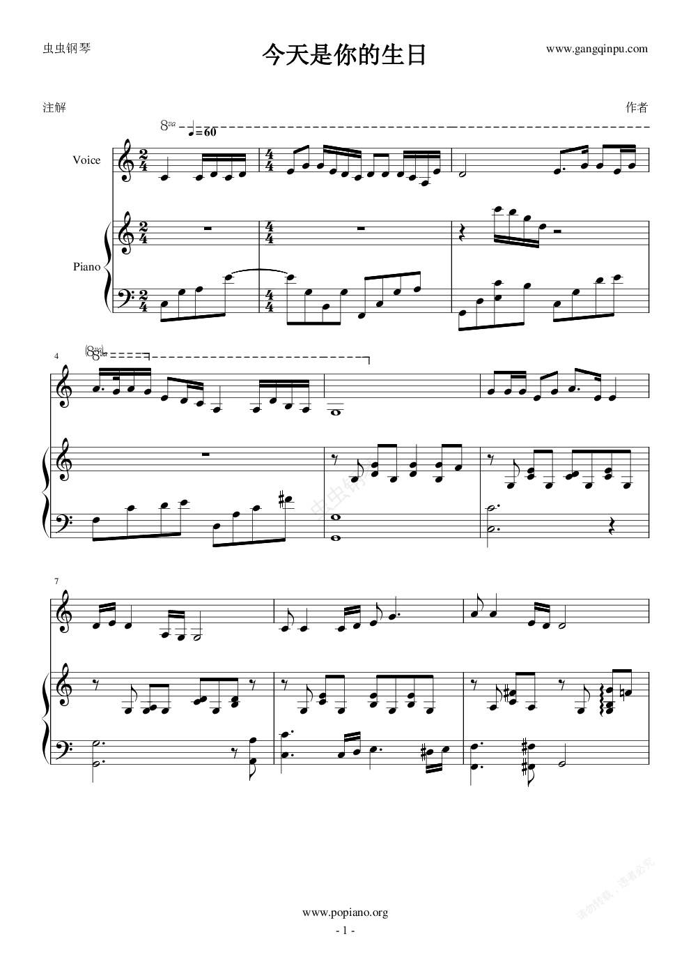 钢琴谱:《今天是你的生日》钢琴伴奏