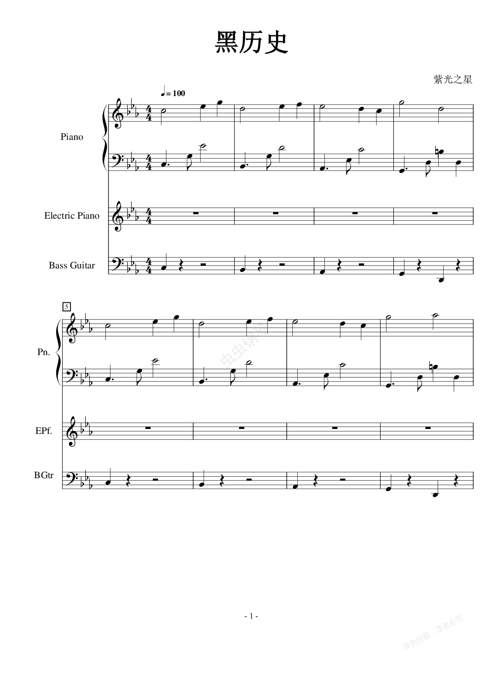 黑历史只是调侃之意。 曲子很平淡啦,取自第一次作曲(未完成)的片段。