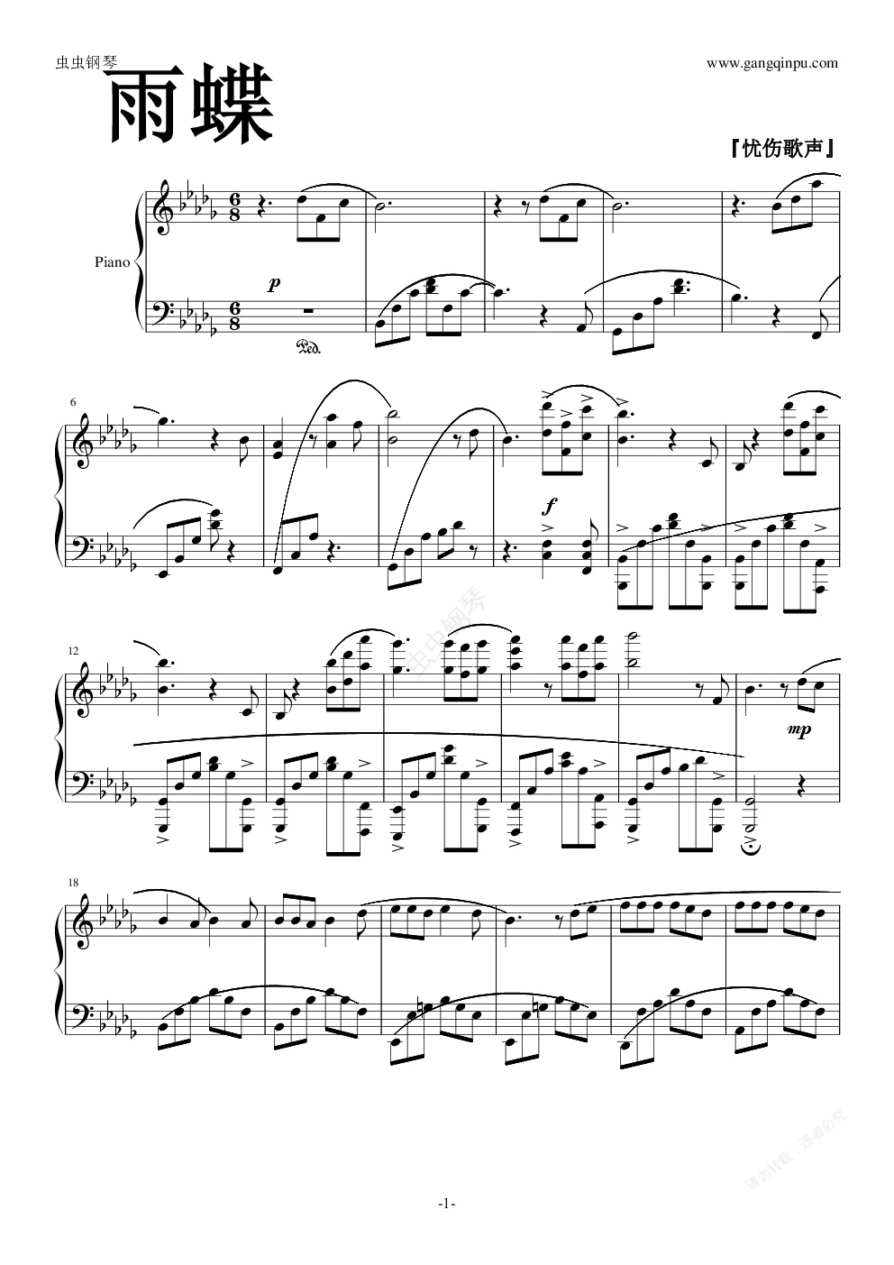 钢琴谱:还珠格格片尾曲《雨蝶》