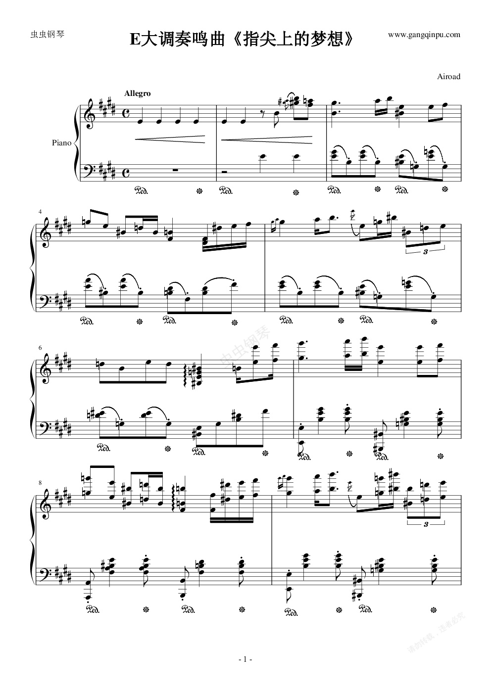 钢琴谱:E大调奏鸣曲《指尖上的梦想》
