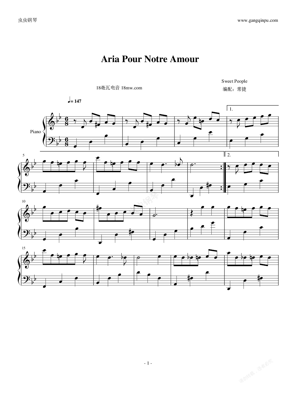 钢琴谱:Aria Pour Notre Amour