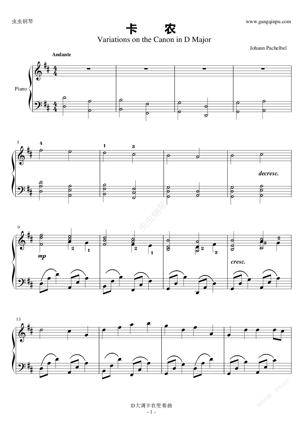 这是我基于 版《卡农变奏曲》、原四提琴版、四手联弹版而整合改编的卡农。温斯顿的钢琴版将调变成了C大调,我觉得原D大调的调性更加灵动优美,因此特改回来。而且其改编将卡农带上了新世纪音乐的色彩,我更喜欢古典味的卡农。最后,变奏曲的难度太大。我在保持原卡农的旋律主体上简化了难度,更适合大家演奏。希望大家喜欢,若有错请指正哈。