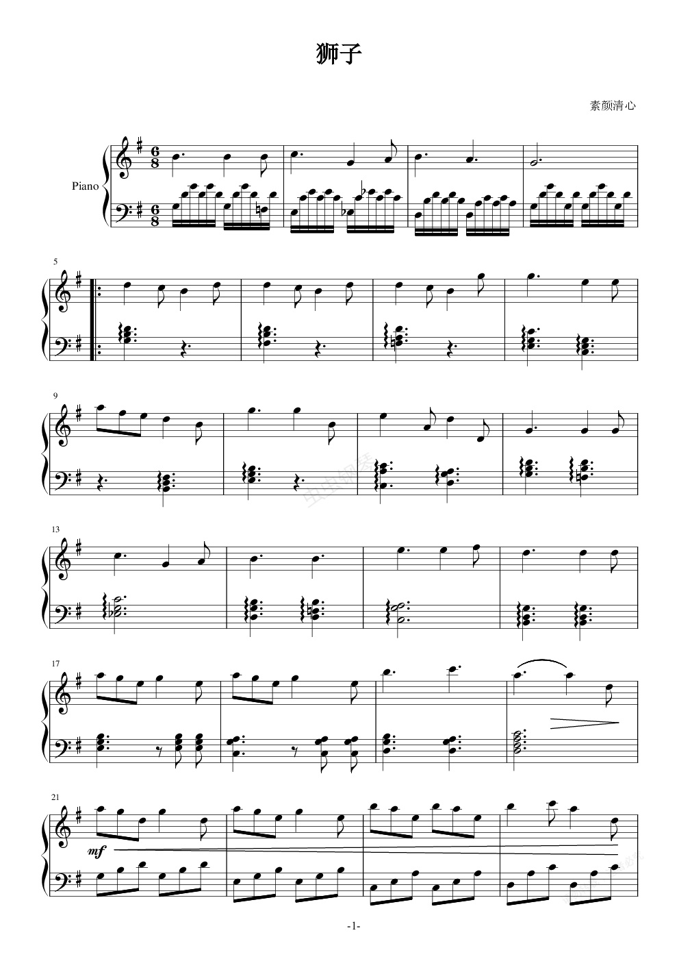 钢琴谱:狮子