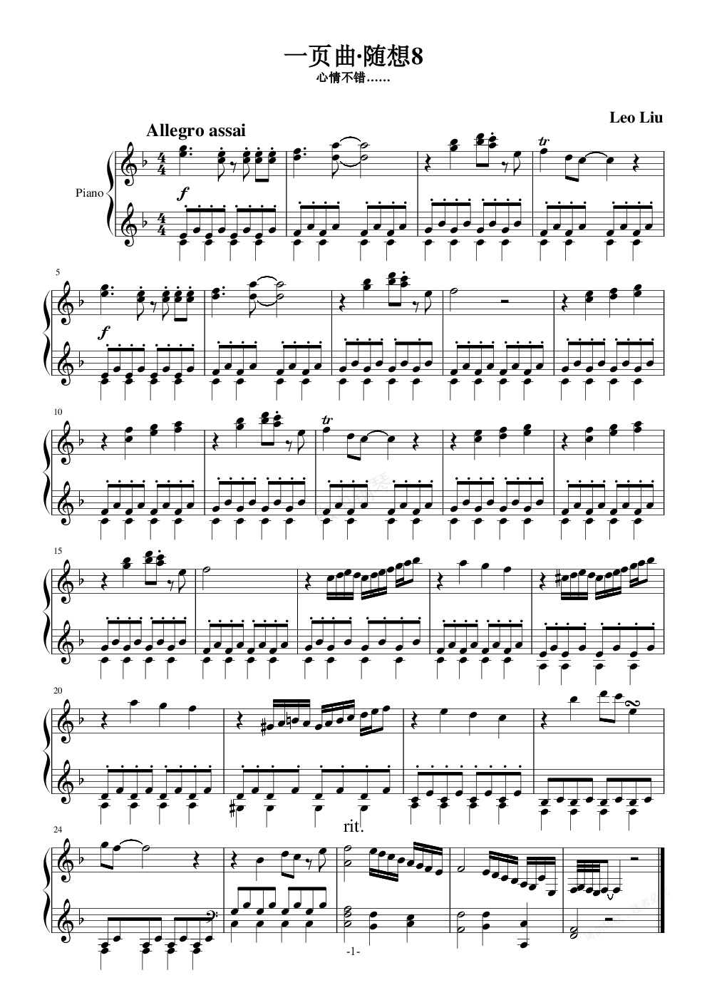 钢琴谱:随想曲8 (快乐)