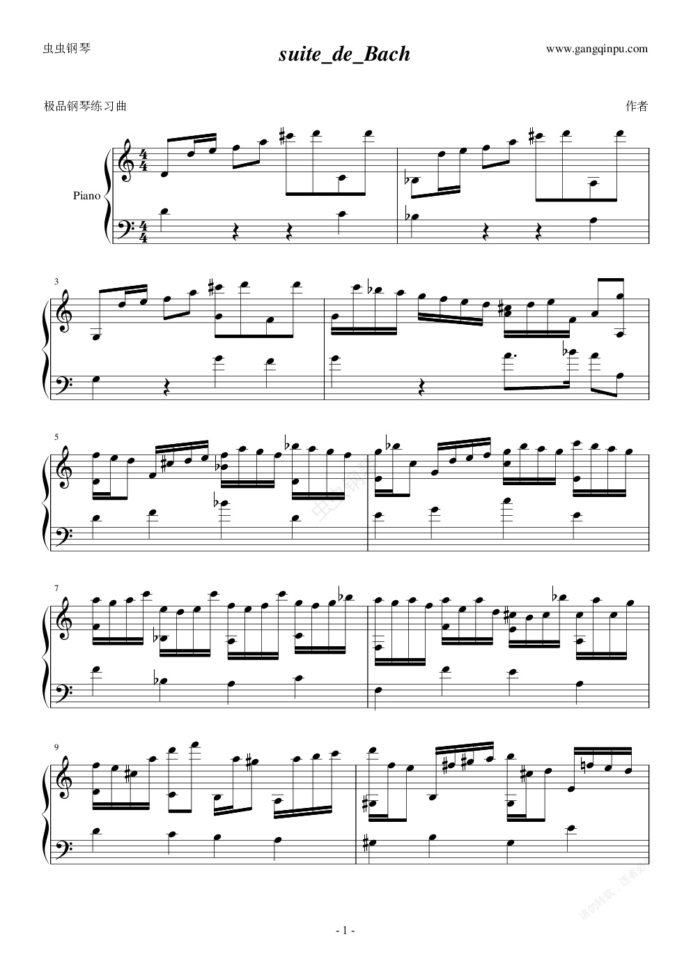 钢琴谱:suite de Bach
