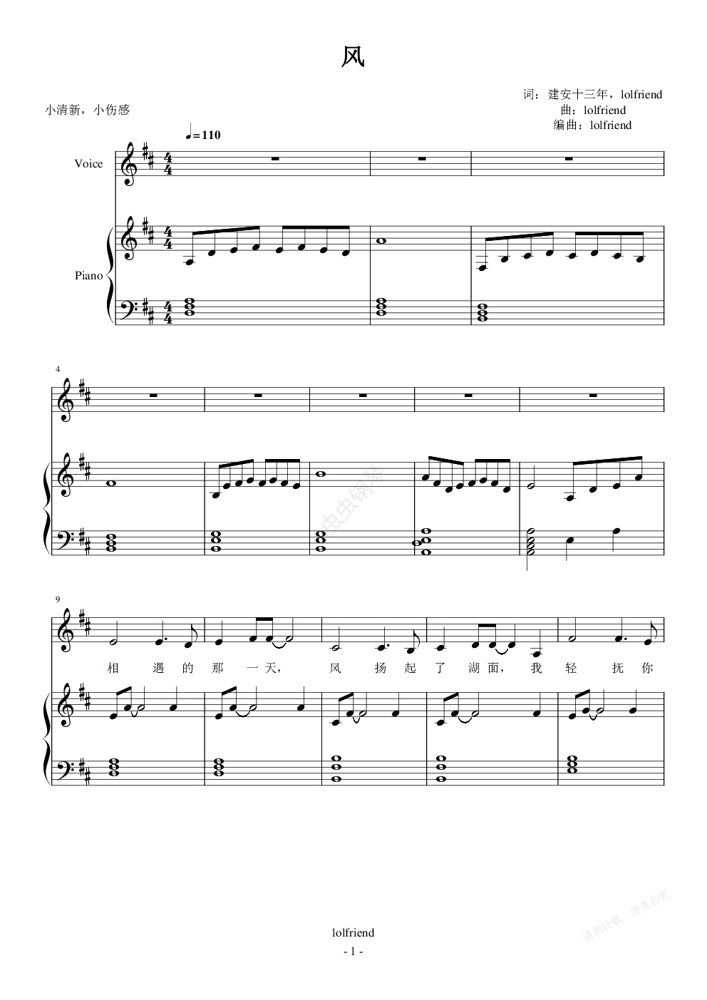 钢琴谱:风