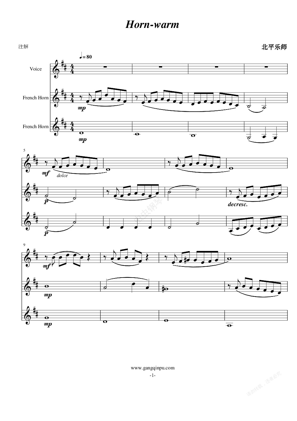 钢琴谱:horn-warm