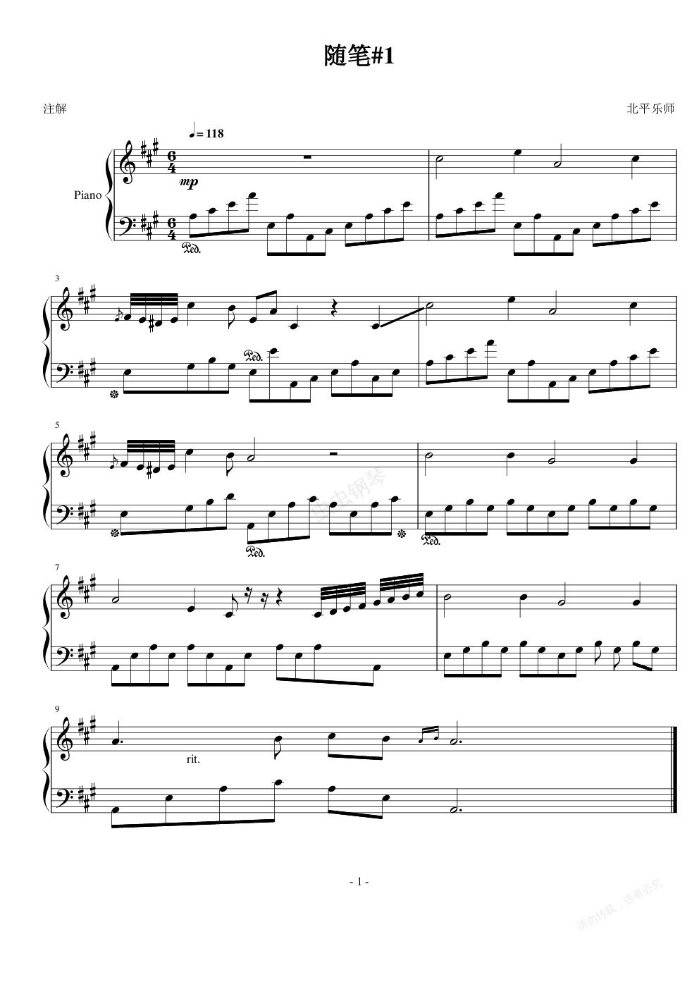 钢琴谱:随笔#1