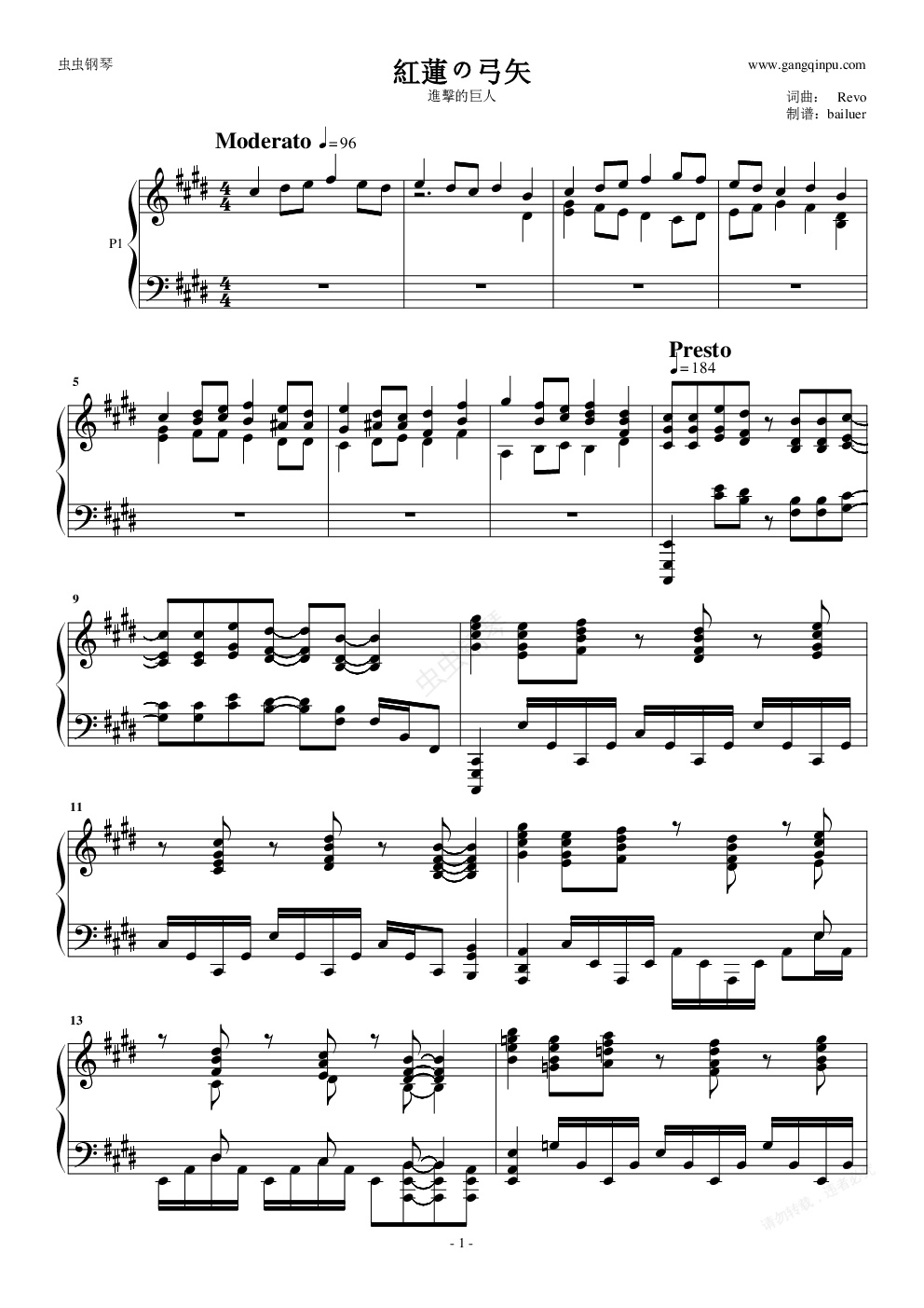 钢琴谱:红莲の弓矢 钢琴谱 5分钟完整版