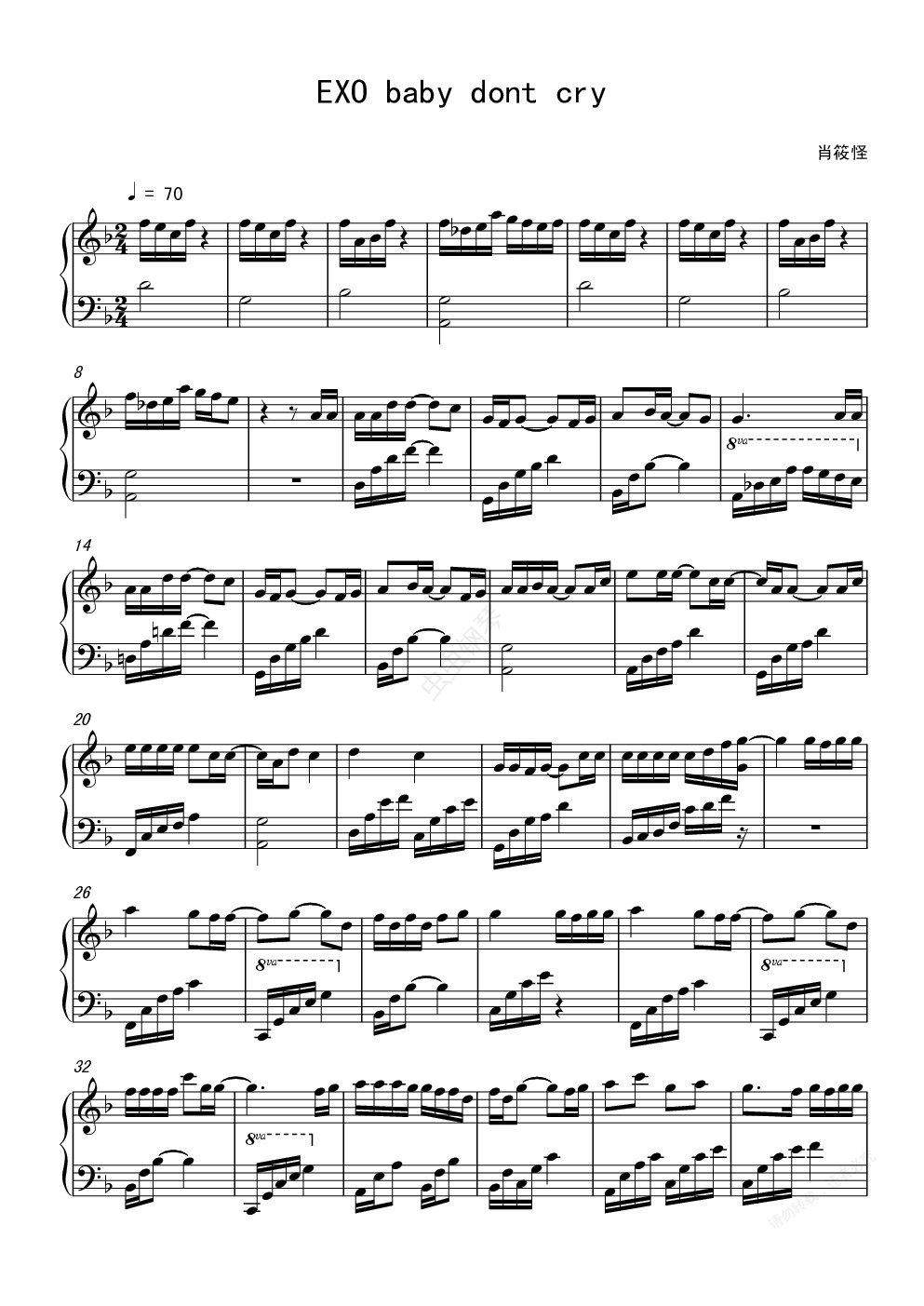 钢琴谱:EXO baby dont cry 钢琴谱